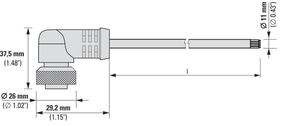 EATON INDUSTRIES - Cavo MB-Power IP67 20m 4 polo preconfezionato su un solo lato con boccola 7/8" angolata SWD4-20LR4P-R.