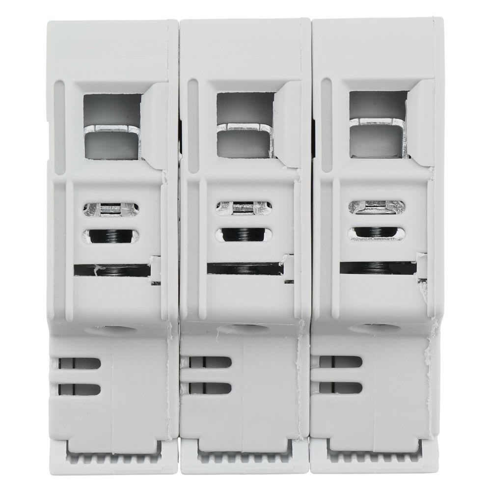 Accessori fusibile, Portafusibile, Bassa tensione, 30 A, AC 600 V, 10 x 38 mm, Class CC, 3P, UL, indicatore, montaggio su guida DIN, modulare, codifica a colori. Idoneo all'uso con cavo 75°C o 90°C, cavo flessibile, morsetti a pala e sbarre combinate. Utilizzare altri cavi tarati per temperature più elevate con un appropriato declassamento di potenza. Per cartuccia fusibile cilindrica, IEC, cULus, CCC, CSA, UR