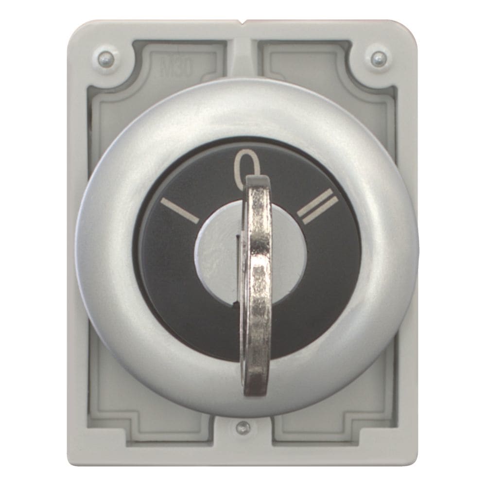EATON INDUSTRIES - Chiave a pulsante, frontale piatta, 3 posizioni, MS3, Ghiera frontale in metallo, estraibile: I, 0, II, 30mm, 3P.