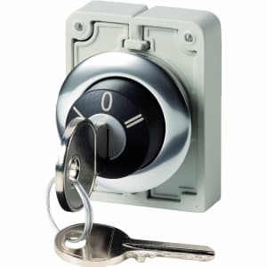 EATON INDUSTRIES - Chiave a pulsante, fronte piatto, 3 posizioni, Ronis 455, estrazione chiave: 0, ghiera frontale metallo.