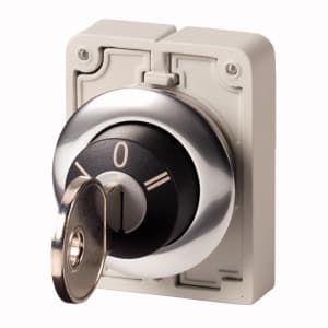 EATON INDUSTRIES - Chiave a pulsante, fronte piatto, impulso, 3 posizioni, MS1-MS20, estrazione chiave: 0, ghiera frontale metallo.