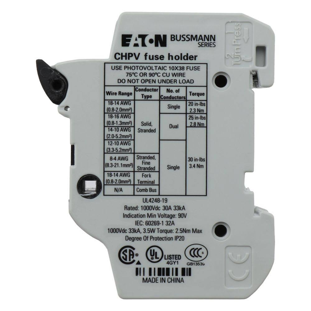 EATON INDUSTRIES - CHPV2U 2P 30A 1000VDC MFH FOR 10X38 GPV