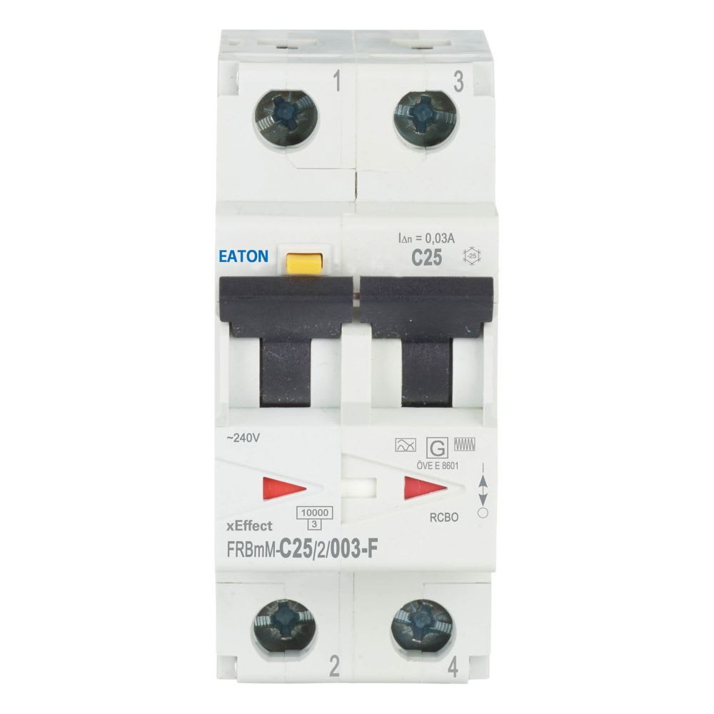 EATON INDUSTRIES - Combinazione RCD/MCB 25A 30mA intervento interruttore modulare C 2p dispositivo differenziale FRBMM-C25/2/003-F MTD 10KA 0,03 F.