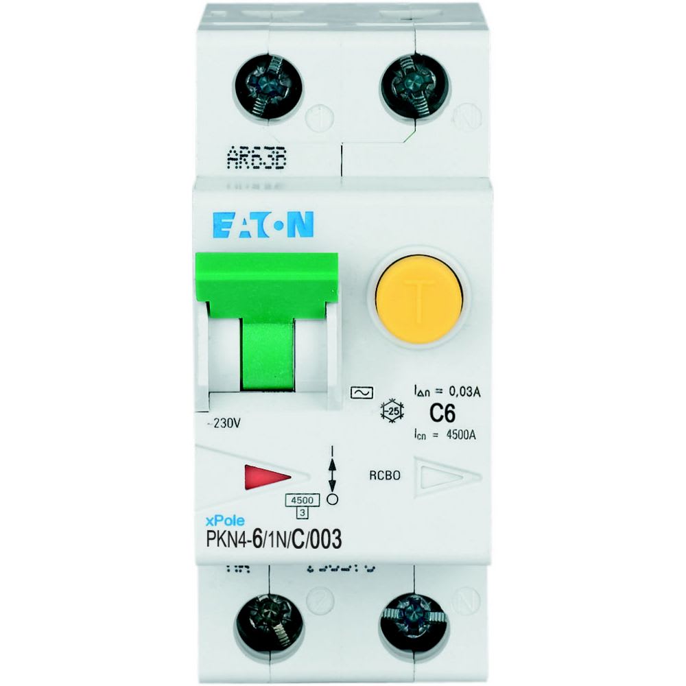 EATON INDUSTRIES - Combinazione RCD/MCB 6A 30mA interruttore modulare C 1p+N dispositivo differenziale PKN4-6/1N/C/003 MTD 1N 6A C 0,03 4,5KA