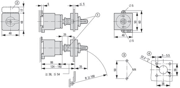 EATON INDUSTRIES - Commutatore T0 20A a comando rinviato 5 Unità costruttiva/e Contatti 10 90° permanente senza posizione 0 1-2 numero di progettazione 8369 T0-5-8369/Z