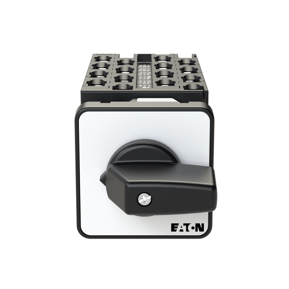 Interruttore di commutazione, Gamma di prodotti: Commutatori di controllo, Rilevatore tipo: T0, con leva nera e piastra frontale, Contatti: 16, Grado di protezione: Frontale IP65, Progettazione: montaggio a incasso, Angolo di commutazione: 90 °, Caratteristica di commutazione: permanente, senza posizione 0, piastra frontale: 1-2, Potenza nominale d'impiego AC-23A, 50 - 60 Hz 400 V: P = 5,5 kW, Corrente nominale ininterrotta: Iu = 20 A, 8 Unità costruttiva/e, Conformità alle norme: IEC/EN 60947, VDE 0660, IEC/EN 60204, CSA, UL, Sezionatori di potenza secondo IEC/EN 60947-3
