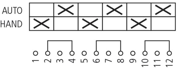 Interruttore di commutazione, Gamma di prodotti: Commutatori di controllo, Conformità alle norme: IEC/EN 60947, VDE 0660, IEC/EN 60204, CSA, UL, Sezionatori di potenza secondo IEC/EN 60947-3, Rilevatore tipo: T0, con leva nera e piastra frontale, Contatti: 6, Grado di protezione: IP30 frontale, Design: fissaggio su quadro di installazione e distribuzione, Angolo di commutazione: 90 °, Caratteristica di commutazione: permanente, senza posizione 0, 3 Unità costruttiva/e, Corrente nominale ininterrotta: Iu= 20 A, piastra frontale: HAND-AUTO