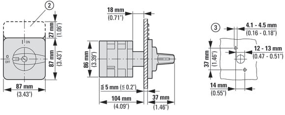 EATON INDUSTRIES - Commutatore T5 100A a incasso 4 Unità costruttiva Contatti 8 90° permanente posizione 0 1-0-2 numero progettazione 8294/E camme