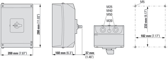 EATON INDUSTRIES - Commutatore T5 100A in custodia 4 Unità costruttiva Contatti 8 60° permanente con posizione 0 1-0-2 numero di progettazione 8213 T5-4-8213/I5 a camme
