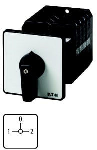 EATON INDUSTRIES - Commutatore T5B 63A a comando rinviato 4 Unità costruttive Contatti 8 90° permanente con posizione 0 1-0-2 numero di progettazione 8294 Z a camme