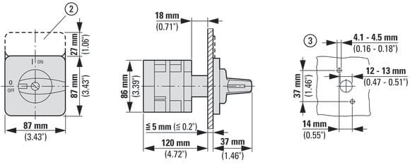 EATON INDUSTRIES - Commutatore T5B 63A a incasso 5 Unità costruttiva Contatti 10 60° permanente posizione 0 1-0-2 numero progettazione 83 T5B-5-8361/E COMM. A CAMME