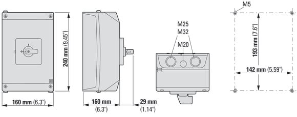 EATON INDUSTRIES - Commutatore T5B 63A in custodia 4 Unità costruttive Contatti 8 90° permanente con posizione 0 1-0-2 numero di progettazione 8294 a camme 207232