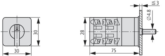 EATON INDUSTRIES - Commutatore TM 10A a incasso, 4 Unità costruttive, Contatti: 8, 60 gradi, permanente con posizione 0, 1-0-2, numero di progettazione 8213.