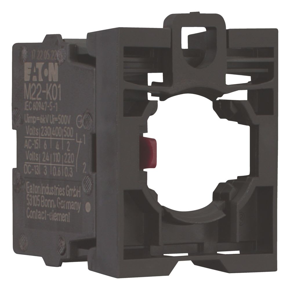 EATON INDUSTRIES - Complessivo dell'elemento di contatto con morsetti a vite e adattatore di fissaggio, 1 NC M22-AK01 MODULO CONTATTI COMPLETO FRONT. 216503