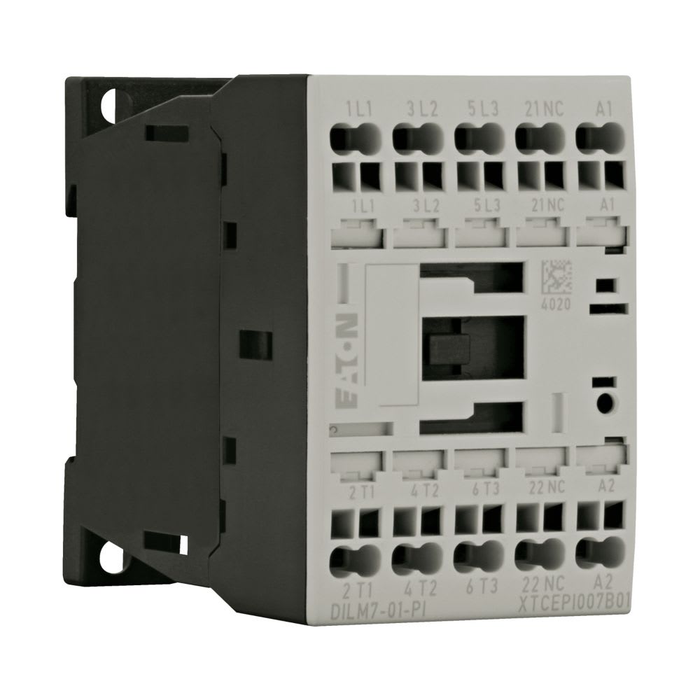 EATON INDUSTRIES - Contattore 3 poli 380V 400V 3kW 1NC 220V 50/60Hz AC Morsetti Push-In DILM7-01(220V50/60HZ)-PI CONT. 199645