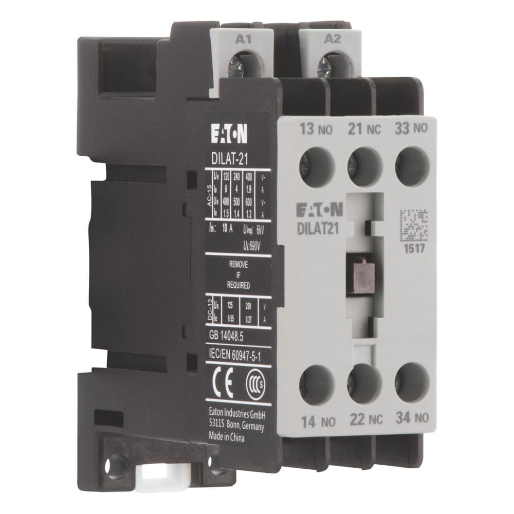 EATON INDUSTRIES - Contattore ausiliario DILAT-21, 230V 50Hz/240V 60Hz, 2NA 1NC, morsetti bullone, comando corrente alternata.