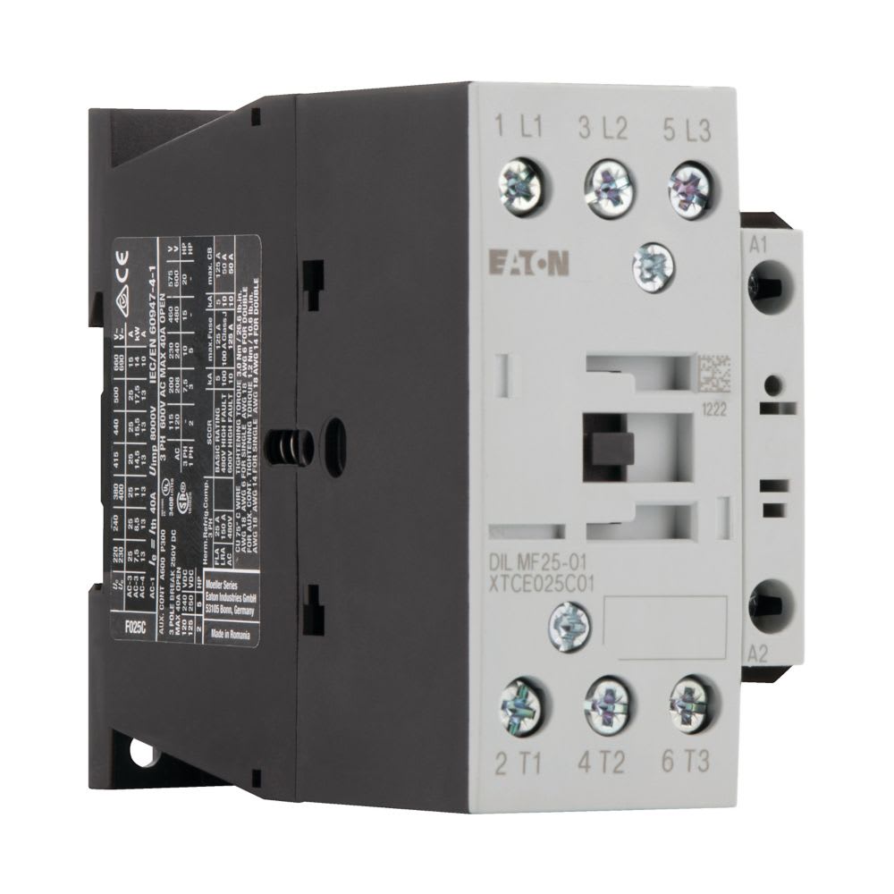 EATON INDUSTRIES - Contattore di potenza per l’industria dei semiconduttori conforme a SEMI F47, 380 V 400 V: 25 A, 1 contatto NC, RAC 24: 24 V 50/60 Hz, Morsetti a vite DILMF25-01(RAC24) CONT.11KW PER SEMI CON.