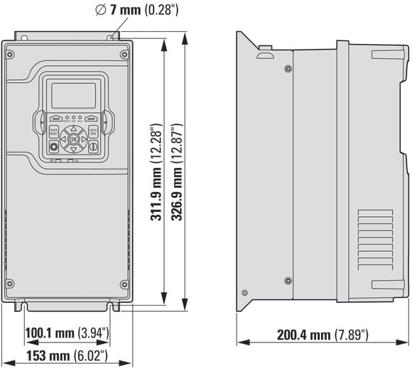 EATON INDUSTRIES - Convertitore di frequenza trifase 230V AC 7,8A 1,5/2,2 kW IP21/NEMA1 Chopper frenatura Induttanza circuito intermedio DG1-327D8FB-C21C INV