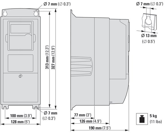EATON INDUSTRIES - Convertitore di frequenza trifase 400V AC 1,1 kW IP54 Filtro soppressore radiodisturbi Chopper frenatura Display OLED FR4 SPXF15A2-4A1B1 INV VET 3-F 400V 1,1KW IP.