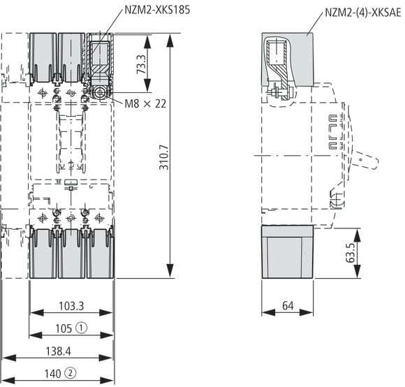Gli accessori opzionali per gli interruttori automatici della serie NZM offrono una gamma completa di opzioni di applicazione in tutto il mondo. Il montaggio è sempre flessibile e facile grazie ai gruppi di funzioni modulari. Note: il codice contiene parti per un morsetto situato sul lato superiore o inferiore per interruttori automatici a 3 o 4 poli. Calotta tag sbarra di collegamento per i punti in cui i capicorda vengono utilizzati su morsetti a vite. Durante l’utilizzo di materiale conduttore isolato per IP2X. Può essere impiegato con NZM2, PN2, NS2