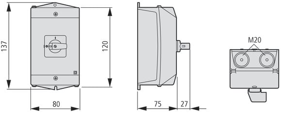 EATON INDUSTRIES - Custodia isolante CI-K2H per T0-1, MBS, A x L x P = 181 x 100 x 80 mm, hard knock out, schermo e piastra di fissaggio per messa a terra.