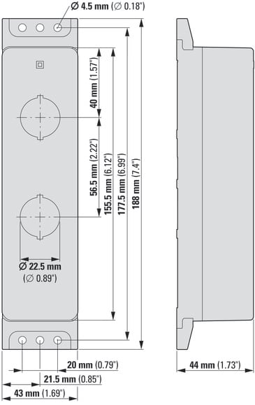 EATON INDUSTRIES - Custodia per montaggio sporgente RAL 7035, Identificabile con configuratore a pulsante, Numero posizioni: 2, Ingresso cavo: M22-FI2-* CUST.FLAT 2F. D22 CUSTOM.