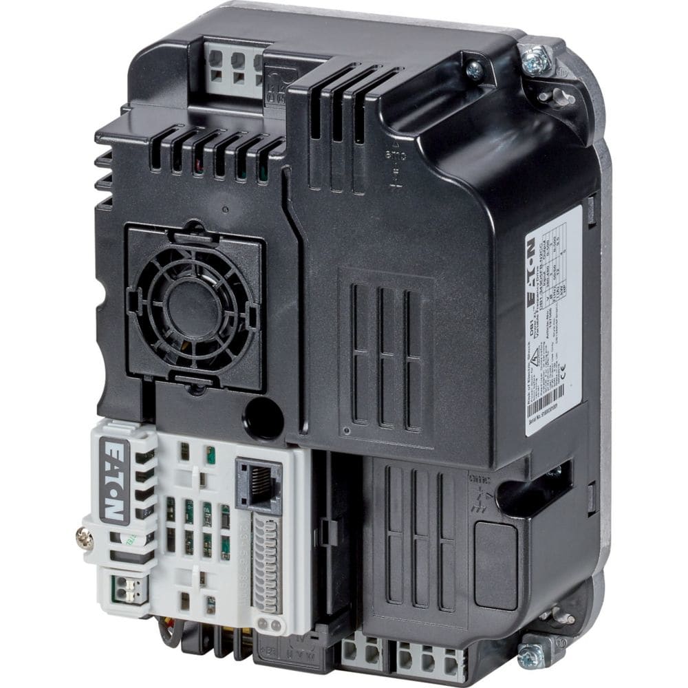 Convertitore di frequenza, Rilevatore tipo: DB1, Tensione nominale d'impiego: Ue = 400 V AC, trifase, 480 V AC, trifase, Tensione di uscita a Ue: U2 = 400 V AC, trifase, 480 V AC, trifase, Tensione di rete (50/60Hz): ULN = 380 (-10%) - 480 (+10%) V, Corrente nominale d'impiego per 150 % sovraccarico: Ie = 9.5 A, Nota: Corrente nominale d'impiego con una frequenza operativa di 8 kHz e una temperatura ambiente di +60 °C, in base al raffreddamento, Nota: Ciclo di sovraccarico per 60 s ogni 600 s, Potenza motore assegnata Nota: per normali motori asincroni in corrente trifase a quattro poli a ventilazione interna ed esterna con 1500 min-1 a 50 Hz o 1800 min-1 a 60 Hz, Ciclo di sovraccarico per 60 s ogni 600 s, a 400 V, 50 Hz, Potenza motore assegnata 150 % sovraccarico: P = 4 kW, 150 % sovraccarico: IM = 9.5 A, Potenza motore assegnata Nota: a 440 - 480 V, 60 Hz, Potenza motore assegnata 150 % sovraccarico: P = 5 HP, Potenza motore assegnata 150 % sovraccarico: IM = 9.5 A, Grado di protezione: IP20/NEMA 0, Interfacce/bus di campo (incorporate): OP-Bus (RS485)/Modbus RTU, CANopen®, Equipaggiamento: Filtro soppressore radiodisturbi, Grandezza: FS2, Conformità alle norme: Requisiti generali: IEC/EN 61800-2, Requisiti EMV: IEC/EN 61800-3, Requisiti di sicurezza: IEC/EN 61800-5-1