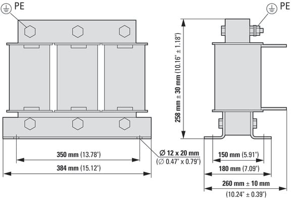 Bobina motore trifase max. tensione di rete ammessa 750V AC corrente nominale d'impiego 220 A induttanza 0,2 mH