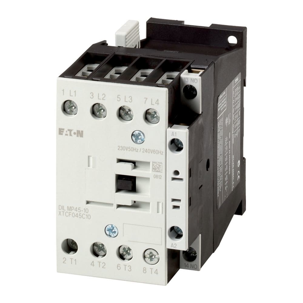 EATON INDUSTRIES - DILMP45-10 Contattore 4P 45A, Comando DC, AC-1: 45A, 1NA, RDC24: 24-27V DC, Morsetti a vite.