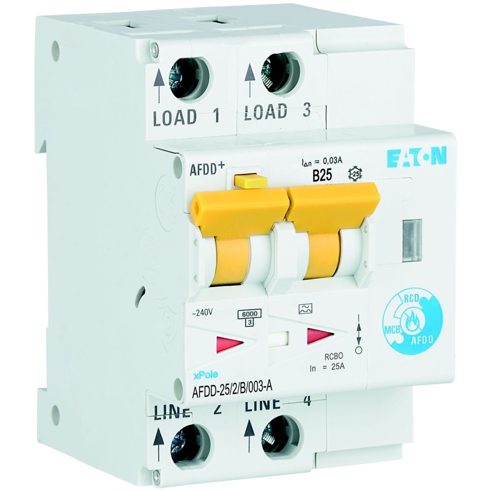 EATON INDUSTRIES - Dispositivo di rilevamento guasti ad arco, Magnetotermico-differenziale 2p, B, 25 A, 30 mA, tipo A, AFDD-25/2/B/003-A 10KA 0,03A.