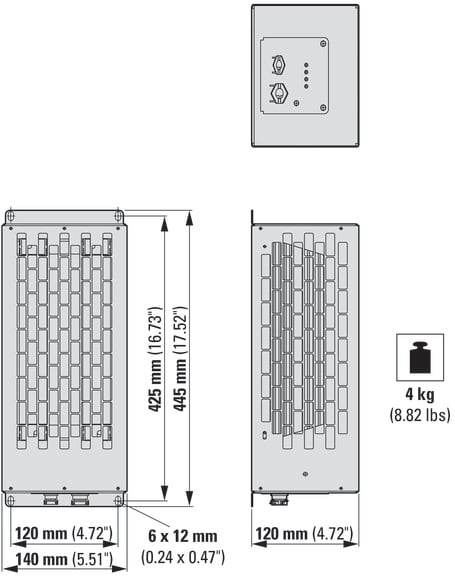 Reostato di frenatura, Descrizione: Resistenza cavo in massa di incorporamento di ceramica in custodia di alluminio, combinata, incorporato in custodia protetta contro i contatti accidentali con interruttore di monitoraggio temperatura e morsetti di collegamento interni, utilizzo con: DA1, DL1, DG1, SVX, SPX, Potenza continuativa al freno: PDB= 0.8 kW