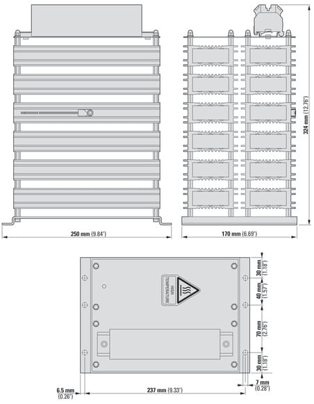 Reostato di frenatura, Descrizione: Combinazione di resistenze (forma costruttiva grandezza 2), con interruttore di monitoraggio temperatura, Con morsetti di collegamento, utilizzo con: DC1, DA1, DG1, SVX, SPX, Potenza continuativa al freno: PDB= 2.88 kW
