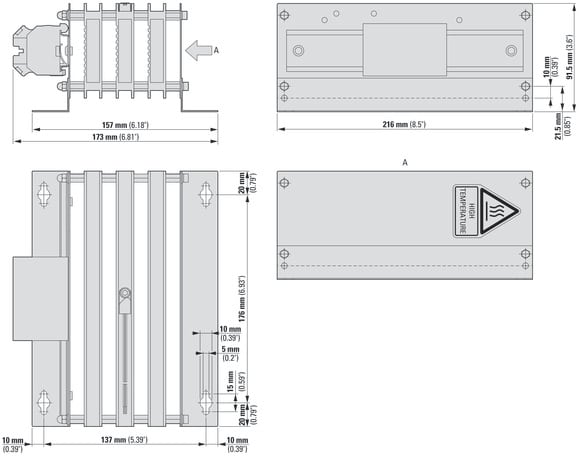 Reostato di frenatura, Descrizione: Combinazione di resistenze (forma costruttiva grandezza 1), con interruttore di monitoraggio temperatura, Con morsetti di collegamento, utilizzo con: DC1, DA1, DG1, SVX, SPX, Potenza continuativa al freno: PDB= 0.6 kW