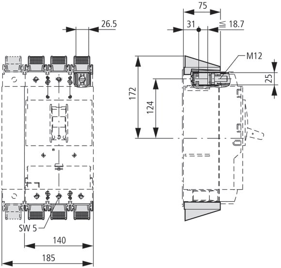Gli accessori opzionali per interruttori automatici serie NZM offrono una gamma completa di possibilità di utilizzo in tutto il mondo. I gruppi funzionali modulari rendono il montaggio flessibile e semplice. Note: il suffisso del codice e il codice contengono parti per un lato interruttore automatico superiore o inferiore per interruttori automatici a 3 o a 4 poli. Kit di conversione per interruttore automatico con collegamento a vite. Montaggio all'interno dell’involucro dell'interruttore. O = montato nella parte superiore. U = montato nella parte inferiore. U e ≧ 525 VAC. Utilizzare calotta NZM3(-4)-XKSA. Utilizza i puntalini con conduttori flessibili e altamente flessibili e tieni conto della capacità limitata delle sezioni di collegamento tramite il manicotto
