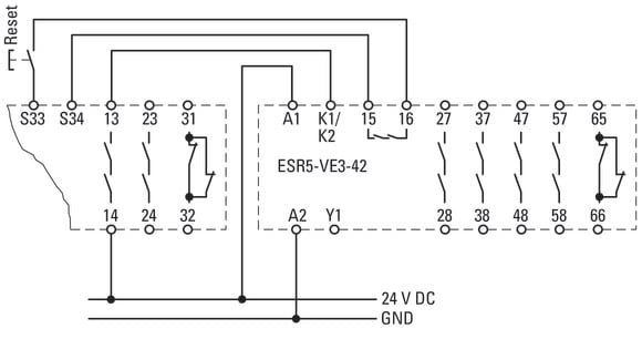EATON INDUSTRIES - Espansione contatti 24VDC/AC, 4 circuiti abilitazione ritardati diseccitazione ESR5-VE3-42 rele sicurezza.