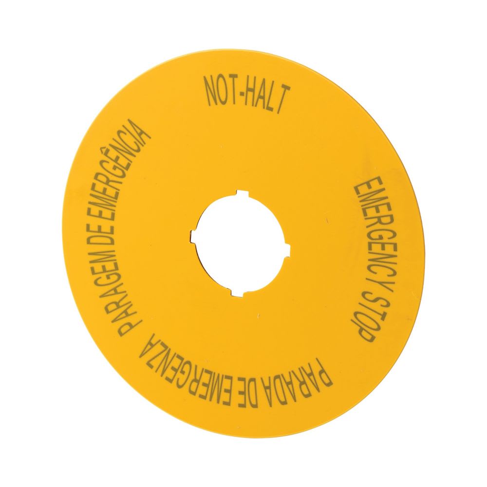 EATON INDUSTRIES - Etichettatrice d'emergenza D=90mm giallo DE EN ES PT M22-XAK12 interruttore D90 D-GB-ES-P. 121086