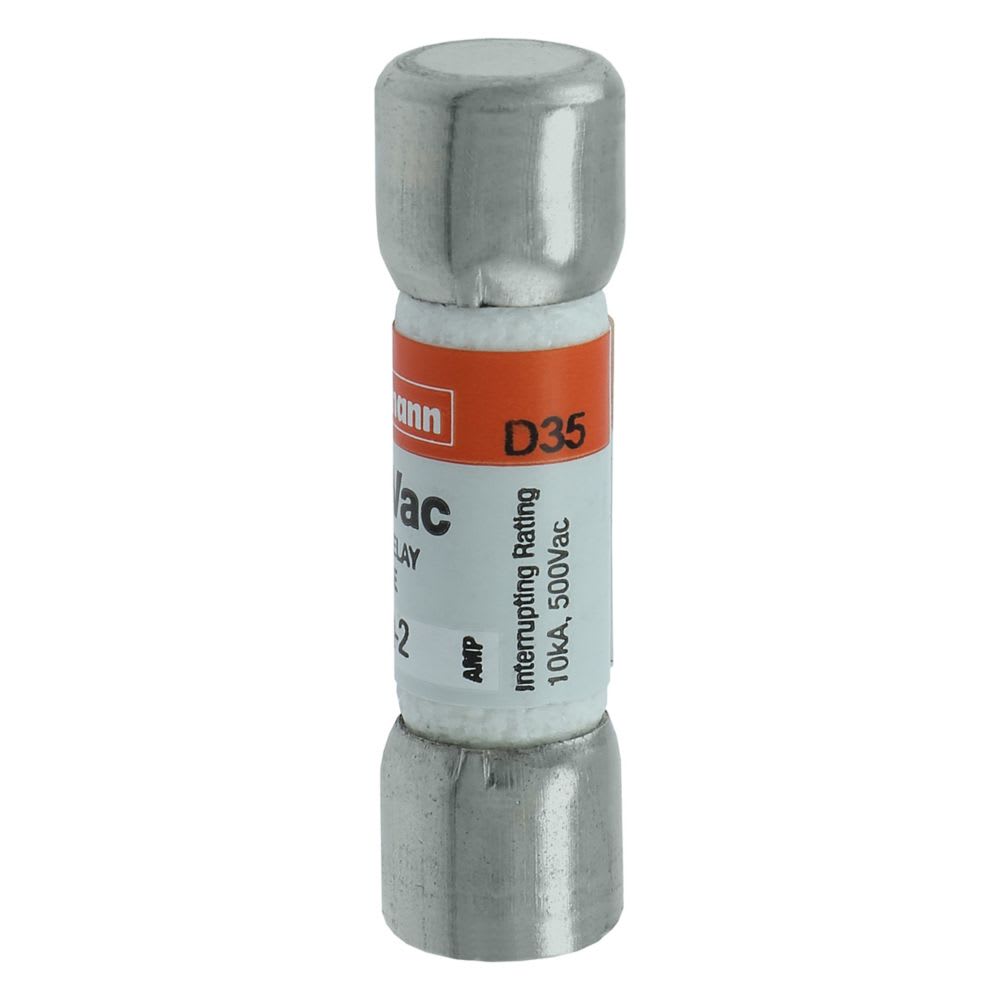 Fusibile, cartuccia fusibile, Bassa tensione, 2 A, AC 500 V, 10 x 38 mm, 13⁄32 x 1-1⁄2 pollici, supplemental, UL, ritardato, cilindrico, codifica a colori, per trasformatori di comando motore e circuiti con elevate correnti di spunto, Costruzione tubolare in fibra, Cappucci terminali in ottone nichelato