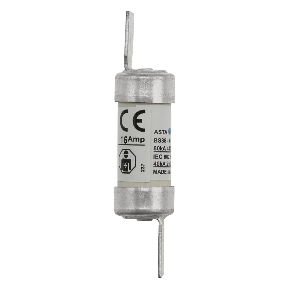 Fusibile, Valore Nominale di 16 A, Tensione Nominale AC 440 V, BS88/F1, 15 x 62 mm, gL/gS, BS, terminali fusibili a coltello sfalsati, applicazioni industriali generiche, BS88-2, IEC 60269-2, Potere di Interruzione 80 kA