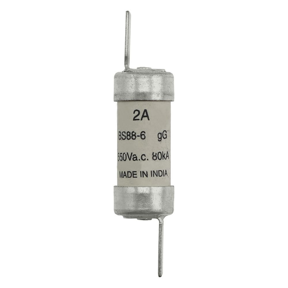 Fusibile, Valore Nominale di 2 A, Tensione Nominale AC 550 V, BS88/F1, 14 x 59 mm, gL/gG, BS, terminali fusibili a coltello sfalsati, applicazioni industriali generiche, BS88-2, IEC 60269-2, Potere di Interruzione 80 kA, Accessori opzionali portafusibili 32NNS SC32