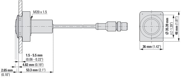 EATON INDUSTRIES - Indicatore luminoso piatto cavo nero con connettore M12A 4 poli 1 m lente bianco LED 24 V AC/DC C30C-FL-W-24-P5.
