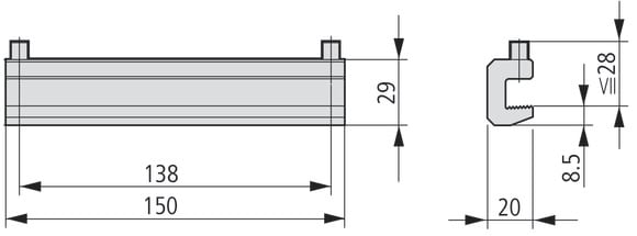 Collegamento longitudinale al sistema a sbarre, 460A, 12-20x5/10, L=150mm, per sistemi a sbarre SASY60i