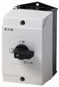 Interruttore ON/OFF, Gamma di prodotti: Interruttore ON/OFF, Riferimento gruppo parti: T3, con leva nera e piastra frontale, 6 polo, Grado di protezione: IP65, Design: montaggio a vista, Angolo di commutazione: 90 °, Prestazione di commutazione: permanente, piastra frontale: 0-1, Potenza nominale d'impiego AC-23A, 50 - 60 Hz 400 V: P = 15 kW, Corrente nominale ininterrotta: Iu = 32 A, 4 Unità costruttiva/e, Conformità alle norme: IEC/EN 60947, VDE 0660, IEC/EN 60204, CSA, UL, Sezionatori di potenza secondo IEC/EN 60947-3