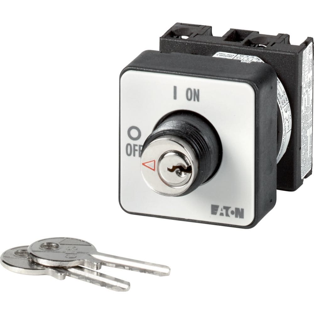 EATON INDUSTRIES - Interruttore a camme T0-1-102/EZ/S, ON/OFF, 20A, incasso a fissaggio centrale, 2 poli, piastra frontale, chiusura con funzionamento a chiave S-T0.