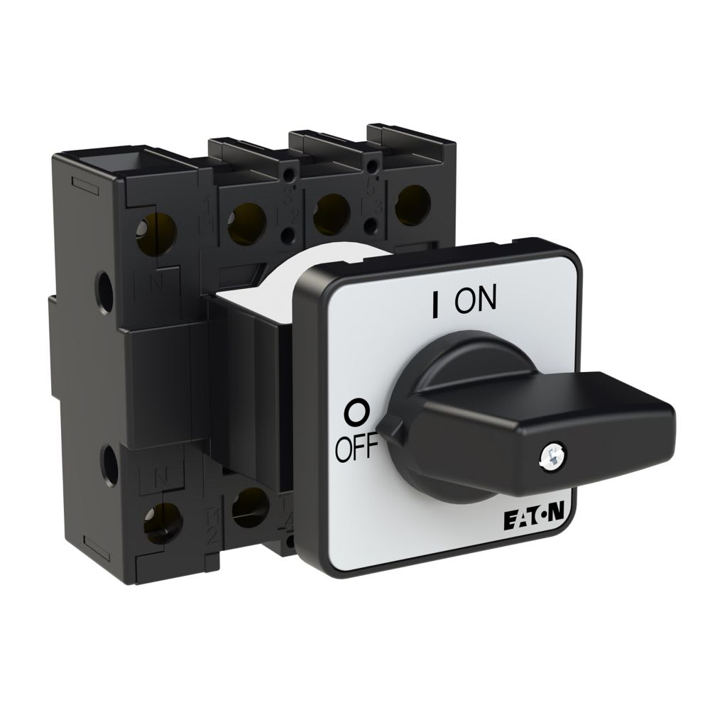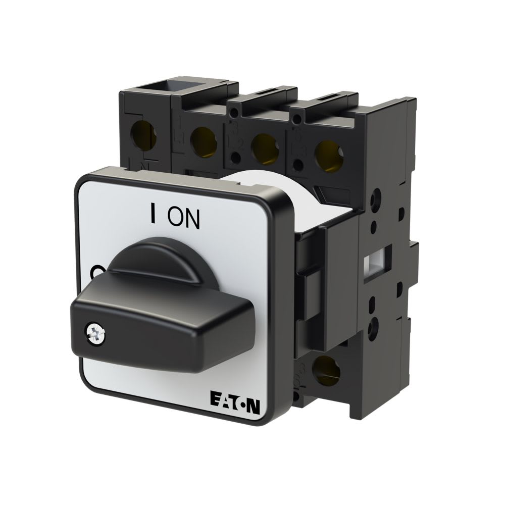 EATON INDUSTRIES - Interruttore a incasso ON/OFF, 25A, 3 poli + N, leva nera e targhetta frontale.