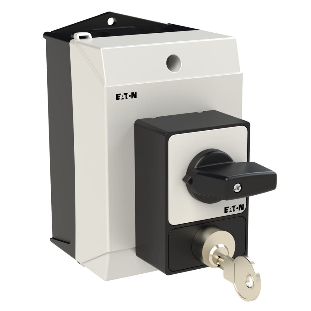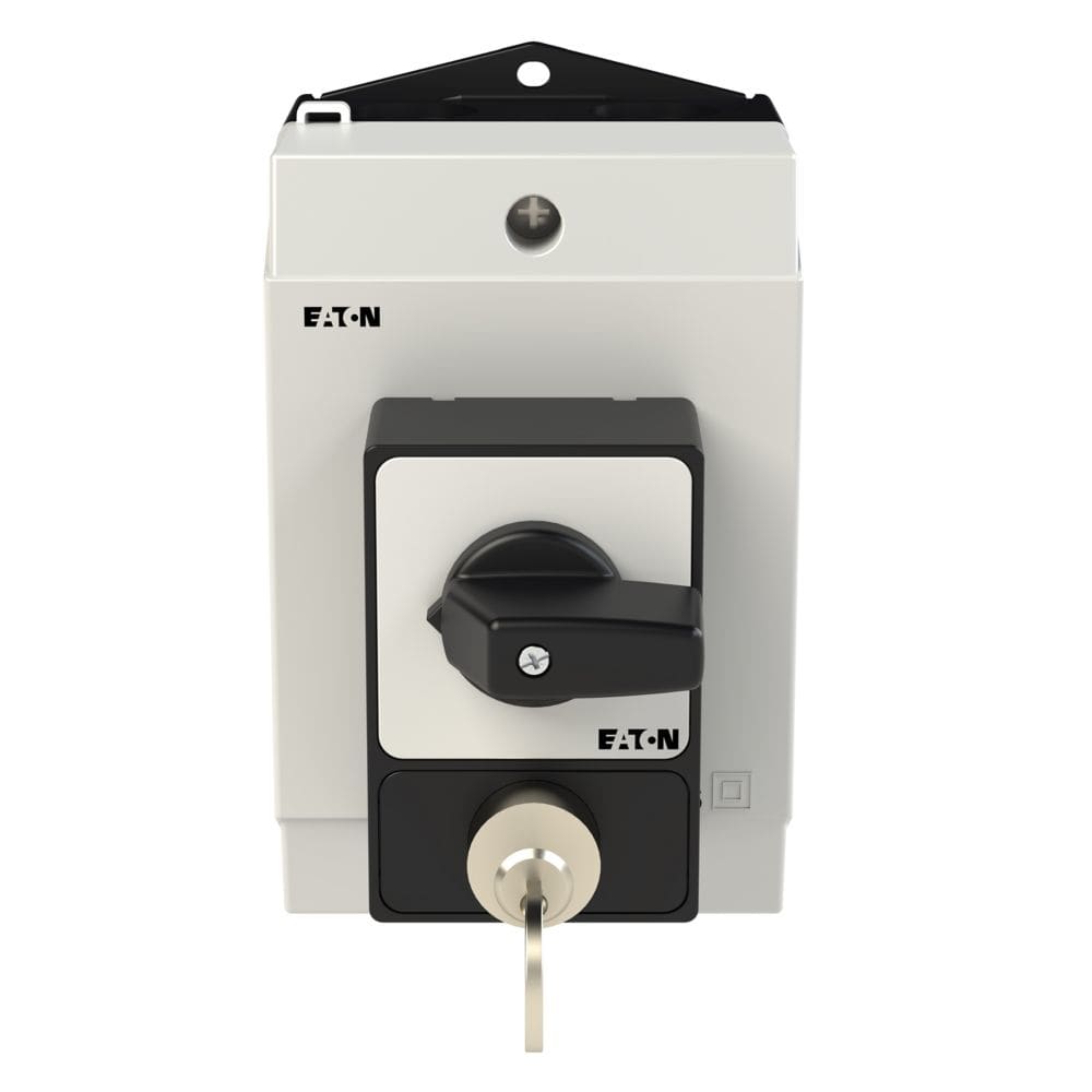 EATON INDUSTRIES - Interruttore antipanico T0-2-1/I1, 20A, custodia, 3 poli, leva nera, targhetta frontale, blocco con serratura a cilindro SVA.