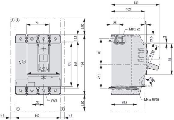 EATON INDUSTRIES - Interruttore automatico 4p 100A morsetti a mantello NZMN2-4-AF100-BT-NA INT.AUT. (UL/CSA)