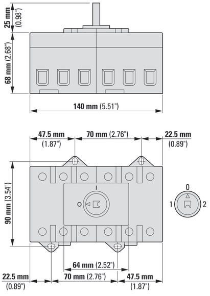 Sezionatore QM100/3, interruttore di commutazione, 2 x 3 poli, corrente termica in aria libera Ithe 100 A, con albero 6 mm quadrati
