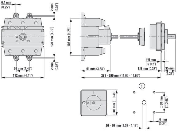 EATON INDUSTRIES - Interruttore di Potenza P5, 160A, 3 Poli, Comando Rinviato, Leva Nera e Targhetta Frontale.
