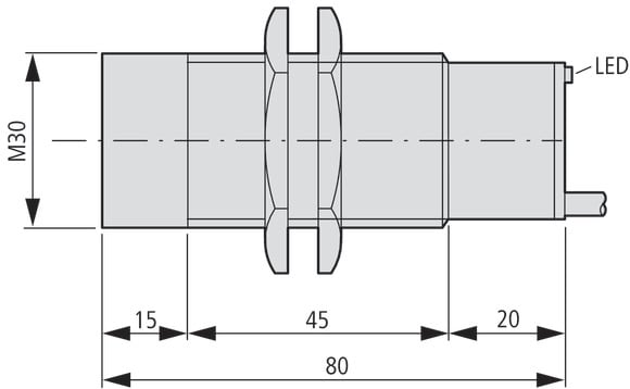 EATON INDUSTRIES - Interruttore di prossimità E57 Global Series 1 NA a 2 fili 20-250 V AC M30 x 1,5 mm Sn=15 mm Sporgente Metallo Cavo di collegamento 2 m E57-30GU15-A SENS IND D.30 SPORG CAVO 2M