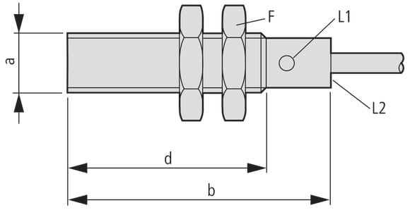 EATON INDUSTRIES - Interruttore di prossimità E57 Miniature Series, 1 NA, 3 fili, 10-30 V DC, M5 x 1 mm, Sn=0,8 mm, Piatto, PNP, Acciaio inox, Cavo di collegamento. 136241